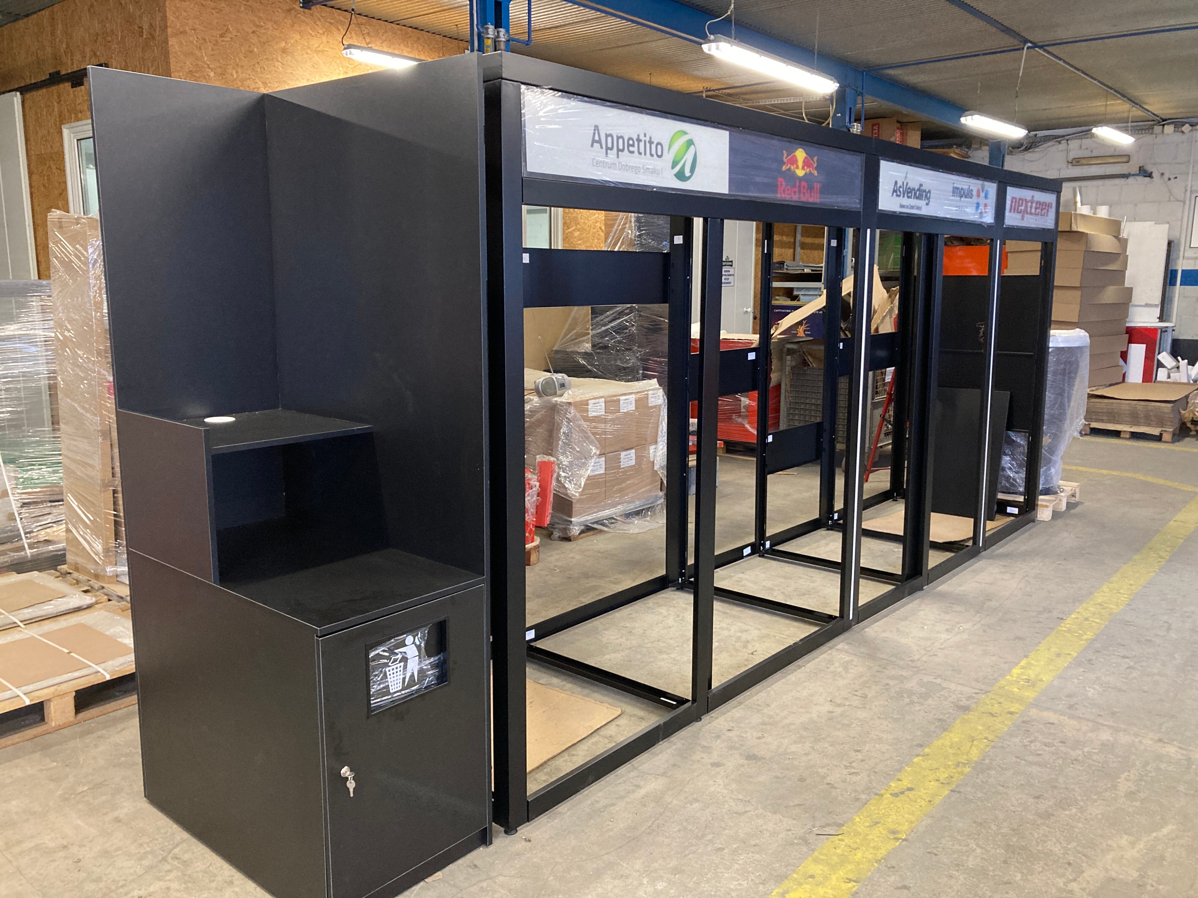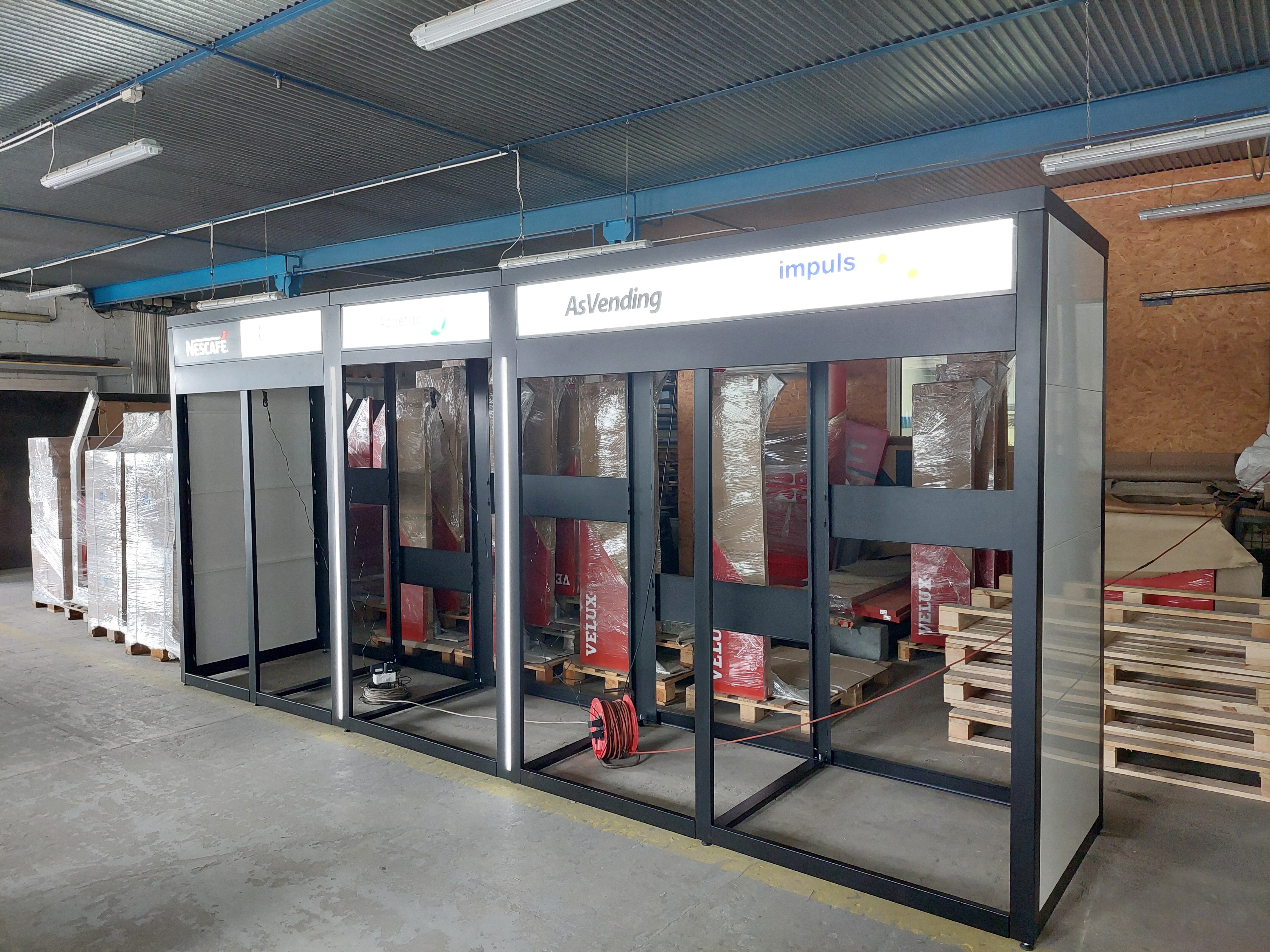El aspecto moderno y atractivo de las estructuras de vending atrae la atención de los transeúntes y los anima a aprovechar la oferta contenida en las máquinas expendedoras instaladas. Además, nuestro sistema de cubiertas de vending proporciona protección a las máquinas contra factores externos y actos de vandalismo.